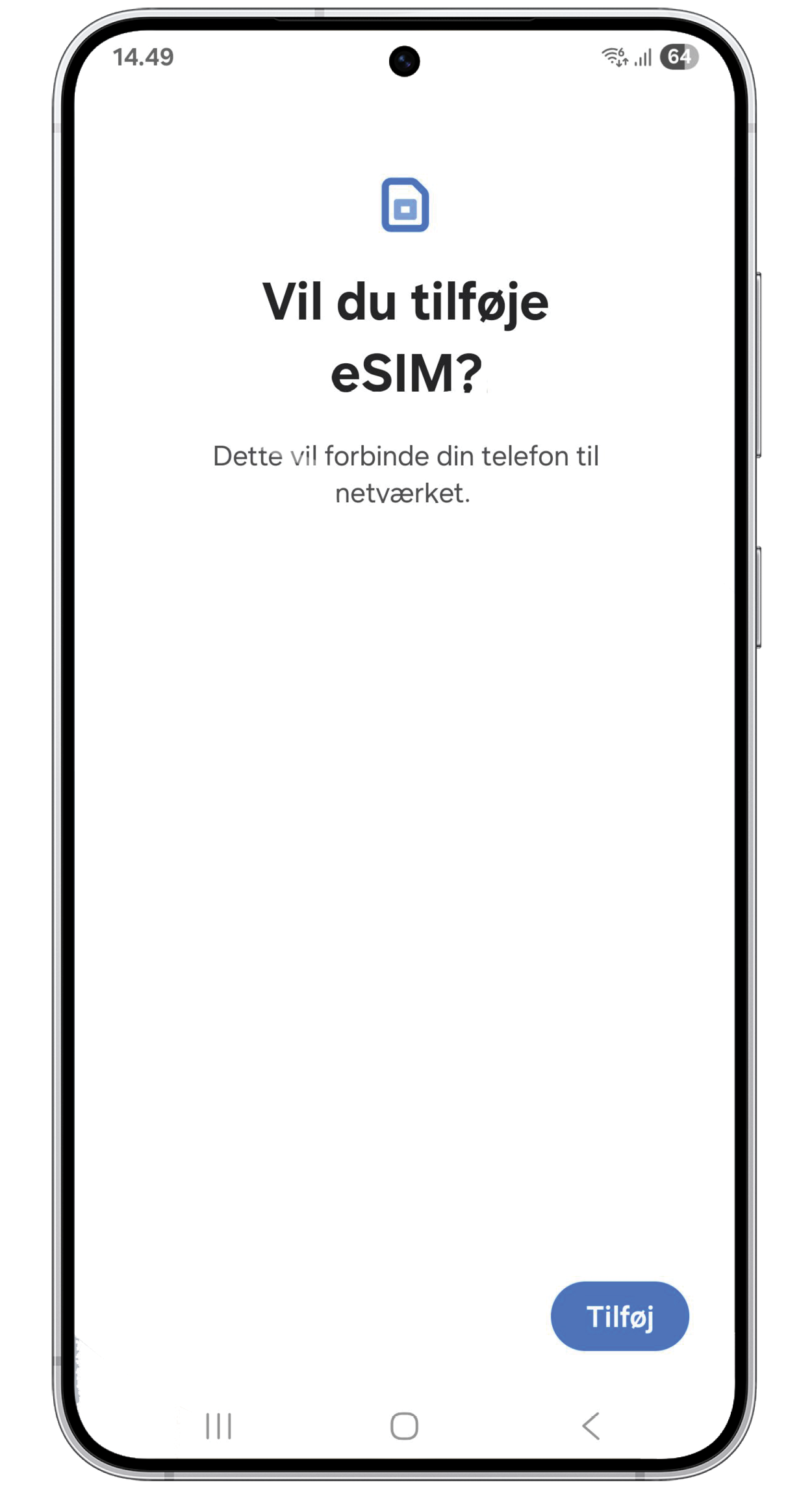 6. Et eSIM kan kun scannes 1 gang. Mislykkes installationen, skal du kontakte kundeservice for at få et nyt eSIM udstedt